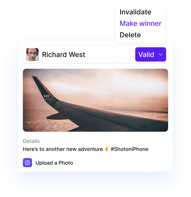 Track entries in real-time, remove fraudulent entries, and pick winners manually or at random — all within your dashboard.
