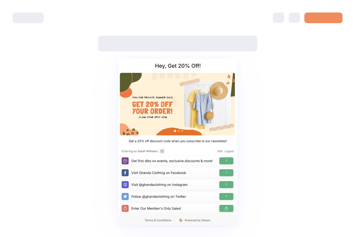 Whether you are running a giveaway to promote new products or services or engaging small businesses with niche offerings, Gleam ensures every experience is tailored, compliant, and built for success.