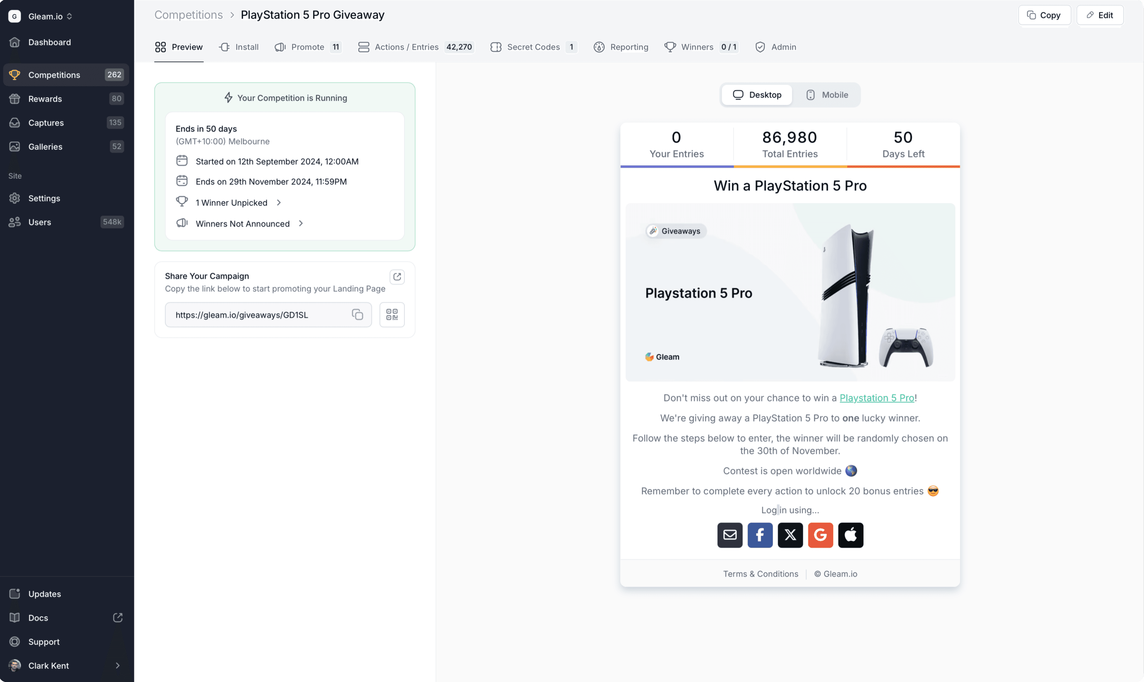 Fantastic tool to create giveaways with various supported platforms and settings to optimize conversions and launch awesome campaigns!
