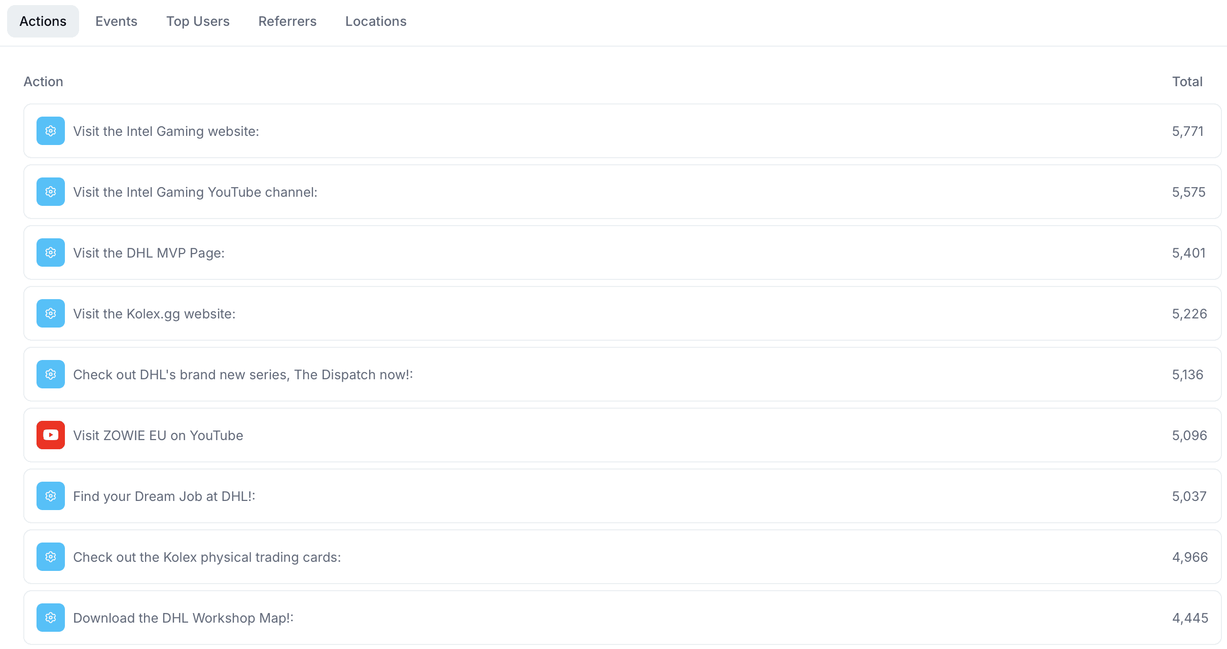 In this campaign, ESL directed users to complete actions across multiple sponsors, including: