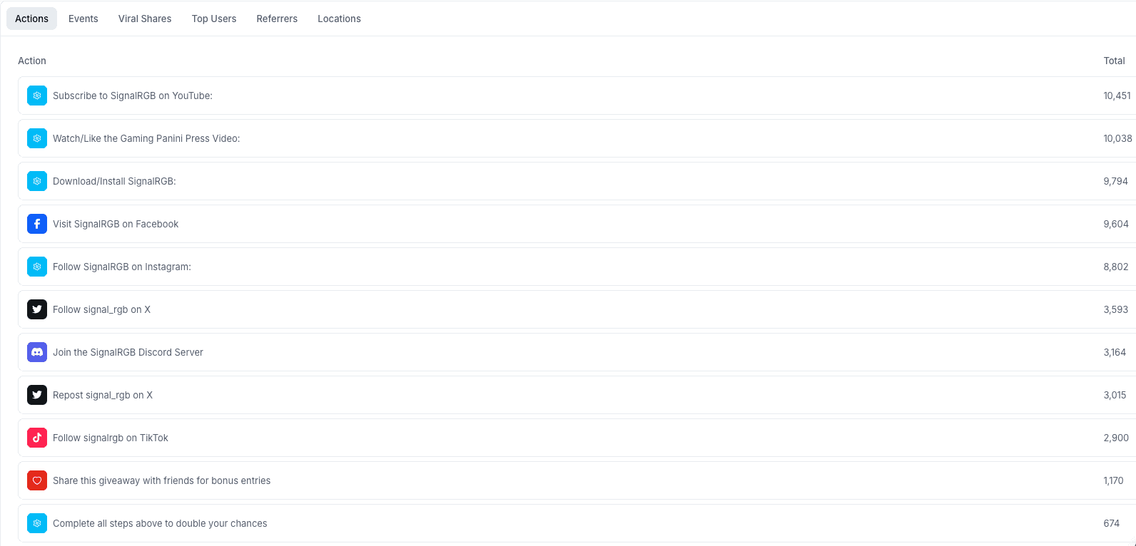 Instead of relying solely on traditional marketing channels, SignalRGB used Gleam giveaways as a top-of-funnel acquisition strategy.